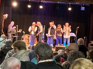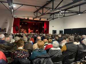 Retour Concert "Armada" La salle de concert est pleine Les musiciens encouragent le public Vente de patisserie Repas avec les musiciens Retour